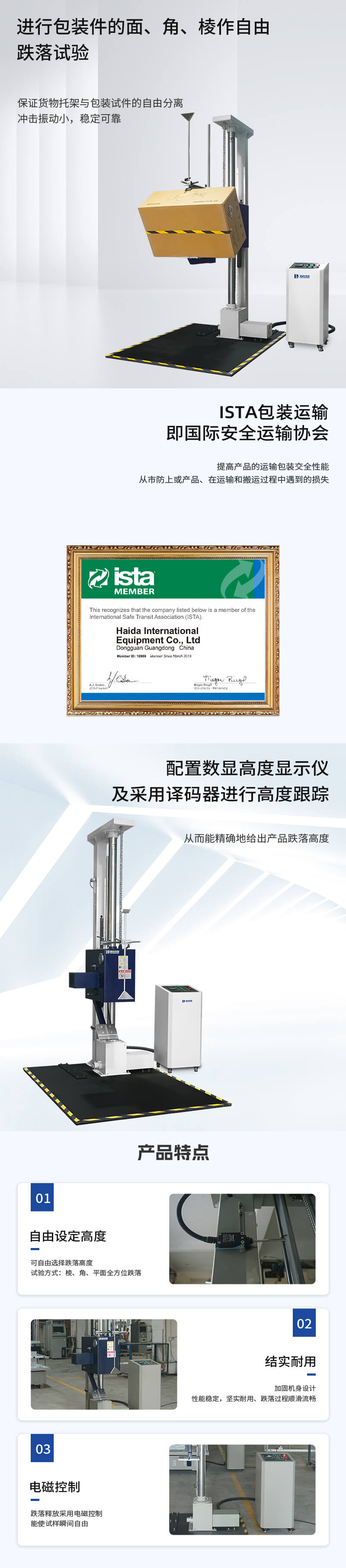 單翼跌落試驗(yàn)機(jī)用于測(cè)試產(chǎn)品包裝受到墜落之受損情況,及評(píng)估運(yùn)輸搬運(yùn)過程時(shí)耐沖擊強(qiáng)度。
