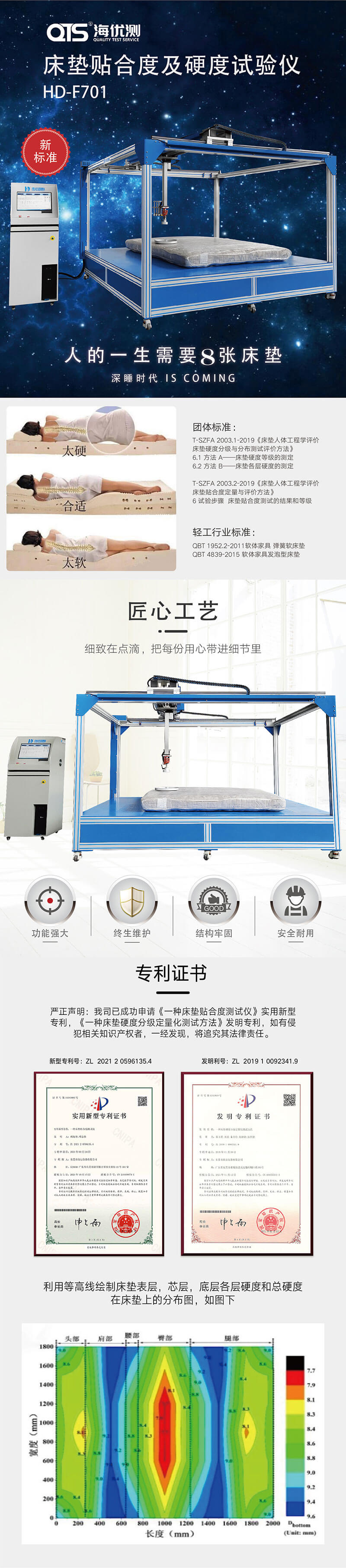 床墊貼合度測試、床墊硬度測試 |