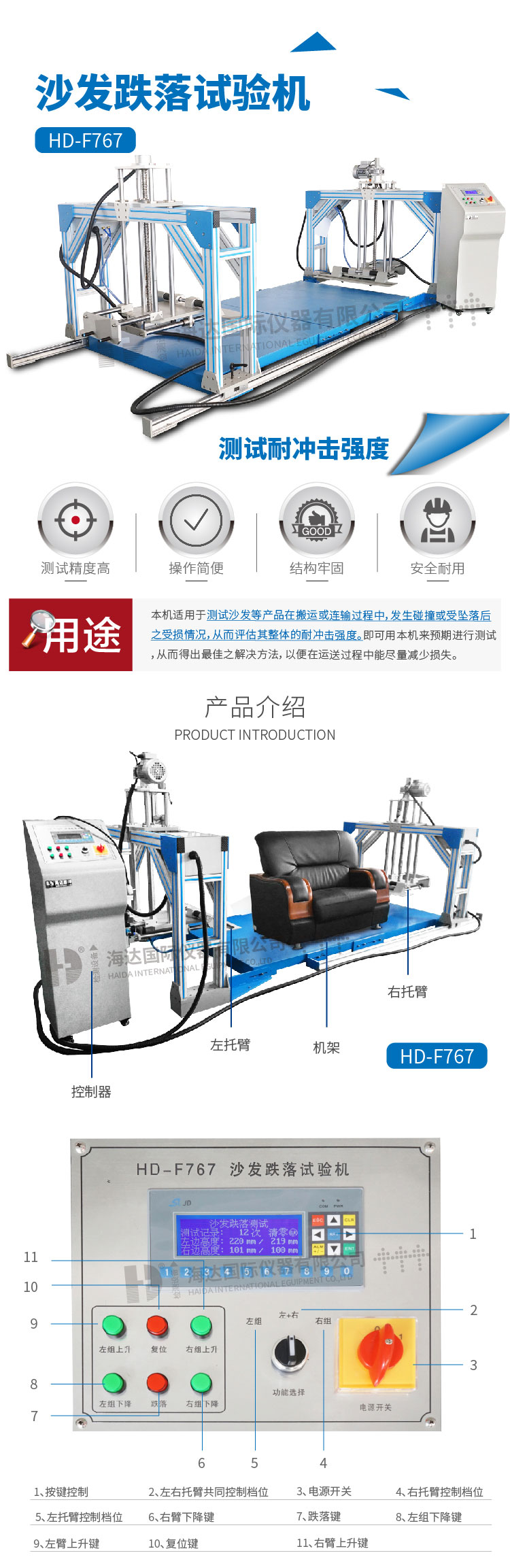 沙發跌落試驗儀評估沙發跌落后木架是否損壞。